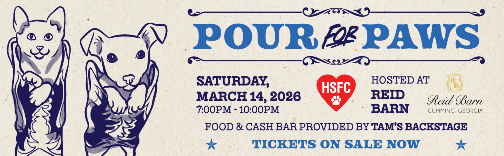 Kick up your boots for Pour for Paws, a western-inspired night of line dancing, bourbon & wine tastings, food and cash bar from Tam’s Backstage, and good company, all benefiting the Humane Society of Forsyth County and the pets who need us most. Click Here to Buy Your Tickets.